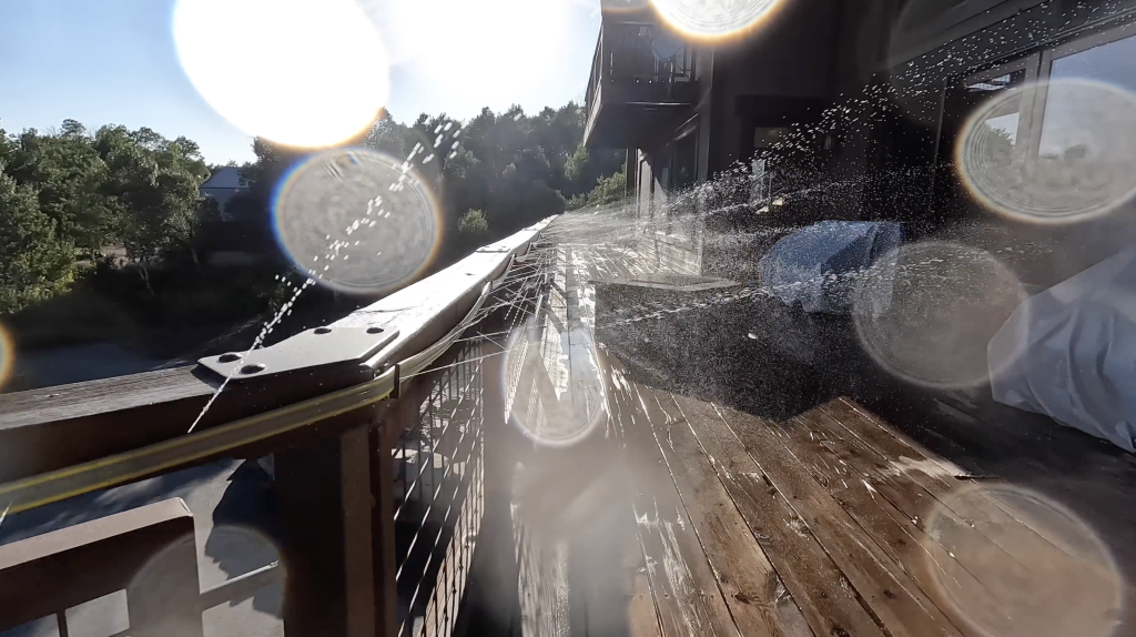 Mistafi™ isn't designed to put out a fire—it's intended to prevent one from starting. Unlike deluge-style suppression systems, Mistafi™ creates a targeted "moisture envelope" over high-risk ignition zones—like decks, and the vulnerable junctions where walls meet the ground or deck surface—quenching embers before they ignite.
